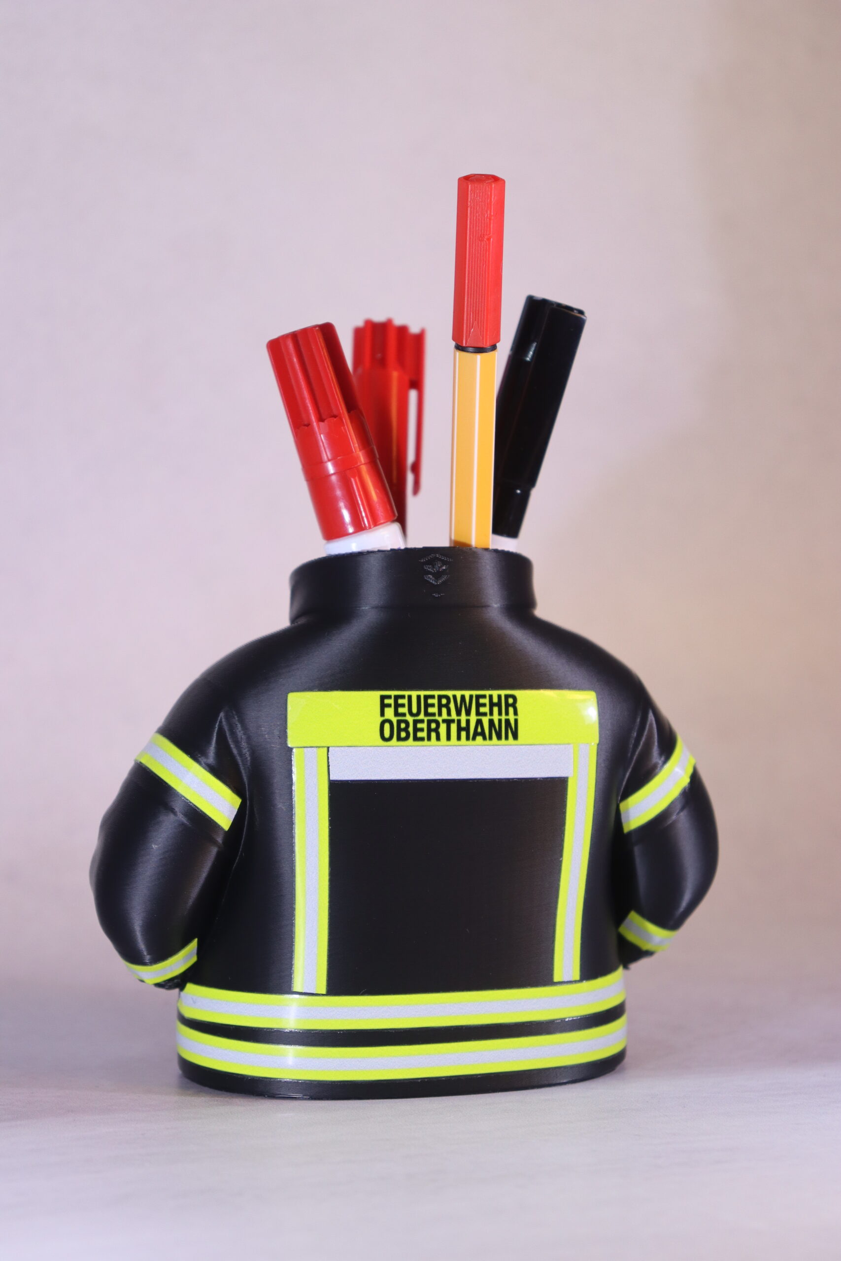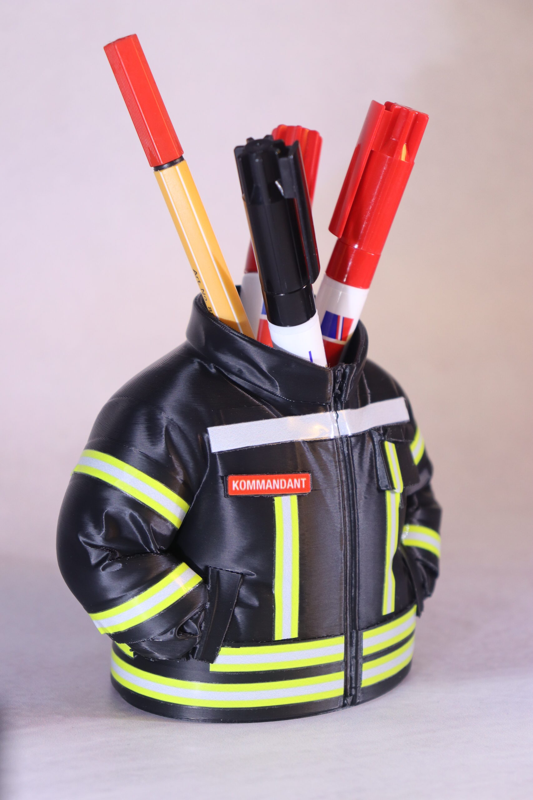 Die Miniaturjacke ist nicht nur Dekoration, sondern funktionaler Stiftehalter.
